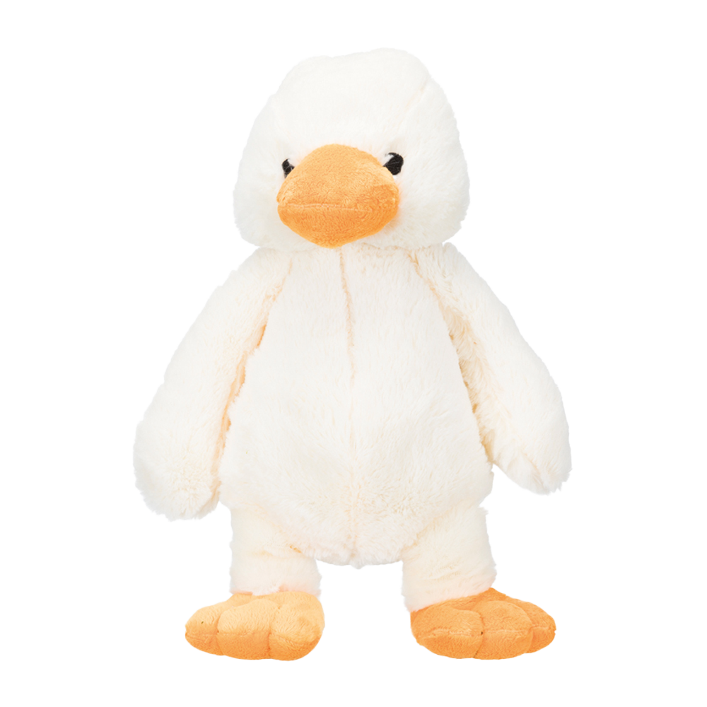 En söt och mjuk anka tillverkad i plysch med inbyggt ljud som lockar till lek. Den generösa storleken gör den perfekt för att bära, skaka eller mysa med, och den lena ytan är skonsam mot både tänder och tassar.