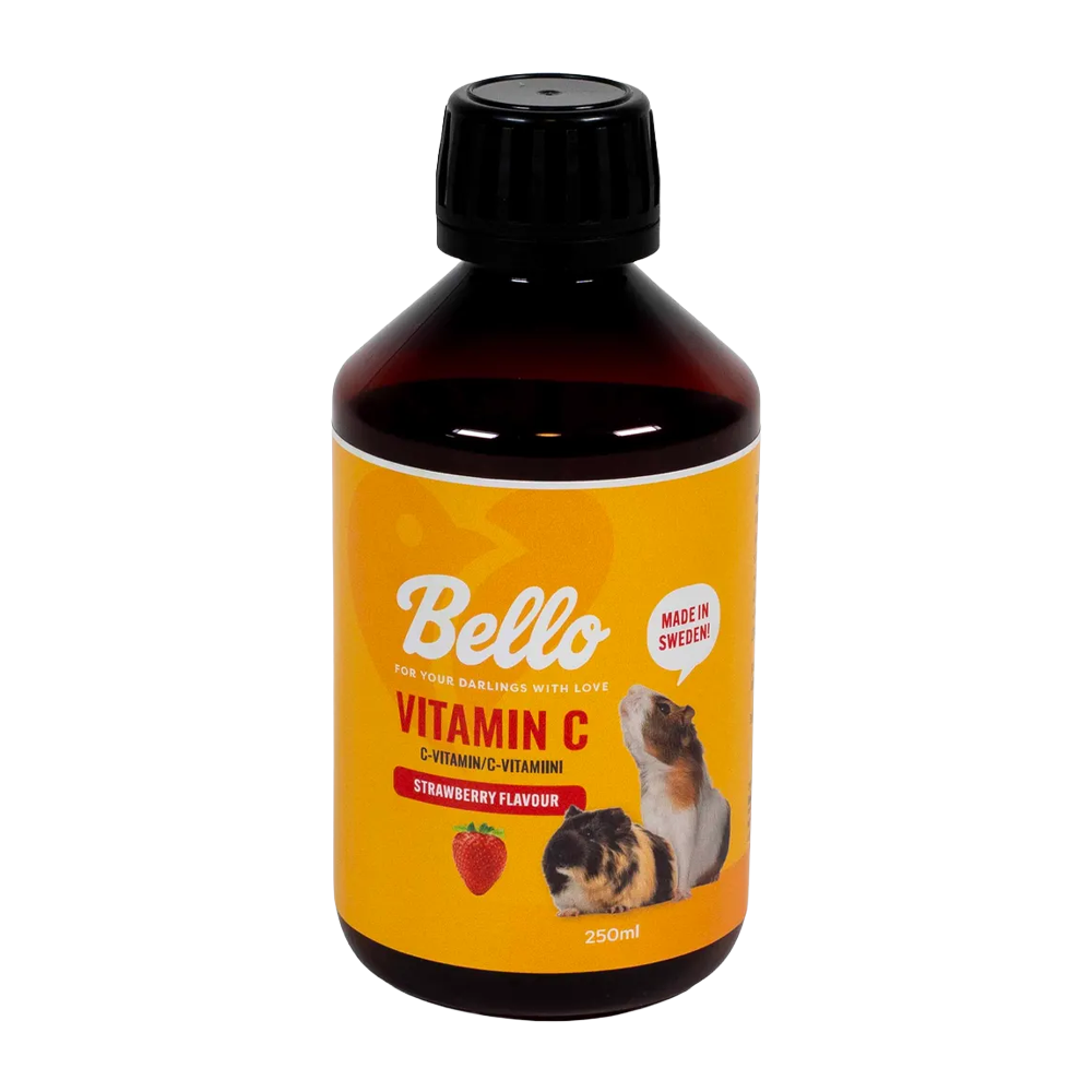 Bello Vitamin C Small Animals Strawberry är ett flytande C-vitamintillskott med mild jordgubbssmak, särskilt anpassat för marsvin och andra smådjur som behöver ett extra dagligt vitaminstöd. Den smakliga formulan gör det enkelt att blanda i vatten eller mat, samtidigt som den säkerställer ett tillräckligt intag av vitamin C – viktigt för immunförsvar, vitalitet och allmänt välmående. Ett smidigt sätt att främja god hälsa hos smådjur som är extra beroende av C-vitamin.