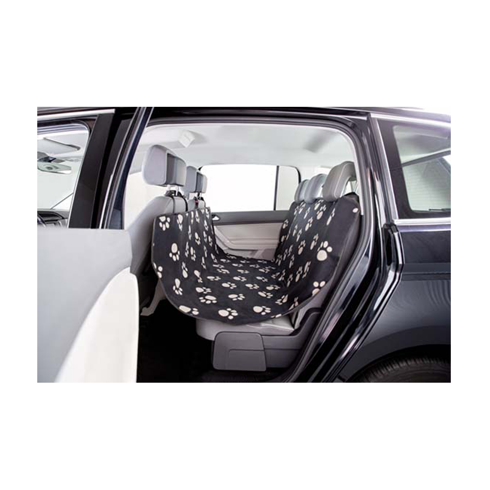 Ett slitstarkt och funktionellt bilskydd för baksätet som effektivt skyddar bilens klädsel mot väta och smuts. Botten är tillverkad i polyester medan ovansidan i mjuk fleece gör det bekvämt för hunden att ligga på. Skyddet är utrustat med öppningar för säkerhetsbälte så att hunden kan spännas fast, samt extra elastiska remmar i varje hörn som håller det på plats under resan.