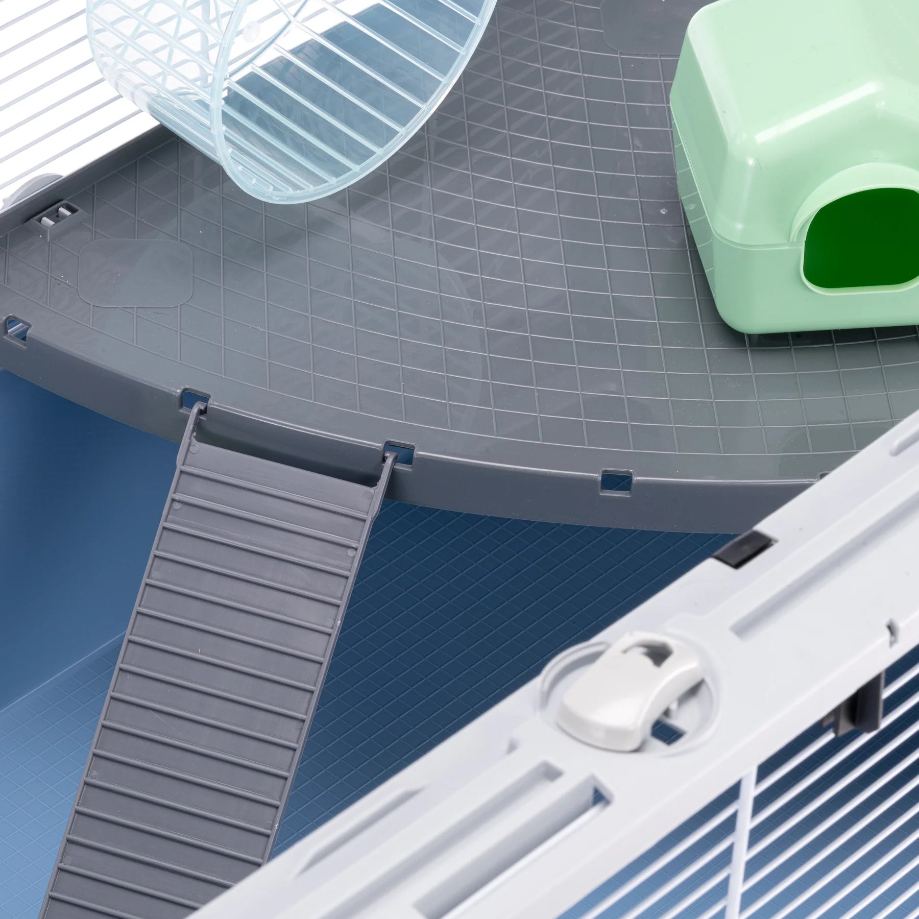 Criceti 80 är en rymlig och genomtänkt hamsterbur som ger ditt smådjur gott om utrymme för både vila och aktivitet. Konstruktionen är anpassad för att skapa en trygg och stimulerande miljö samtidigt som den är praktisk och lättskött för dig som djurägare.