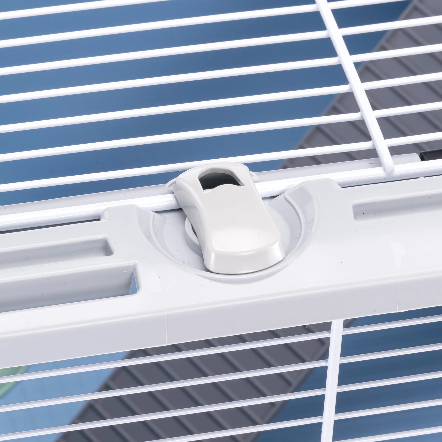 - Mått: Buren har yttermåtten 78 x 48 x 39 cm och är utformad med en hög plastbotten som effektivt förhindrar att strö och bottenmaterial hamnar utanför buren. Den generösa storleken ger bra rörelsefrihet och möjlighet till tydlig uppdelning av olika ytor.