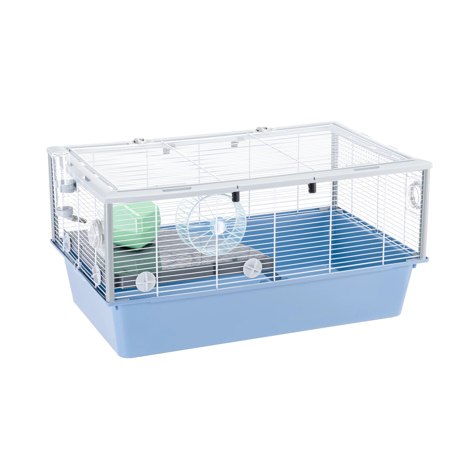 - Funktion: Criceti 80 är uppdelad i två nivåer med hjälp av en rymlig hylla och tillhörande stege. Den nedre delen fungerar som en lugn viloplats medan den övre nivån lämpar sig för mat, vatten och lek. Taket i metallnät kan öppnas helt och är försett med säkerhetslås för enkel åtkomst vid skötsel. Den löstagbara botten gör rengöringen snabb och smidig, och buren är dessutom förberedd för att kunna kopplas ihop med extra rör eller andra modulära hamsterhabitat.