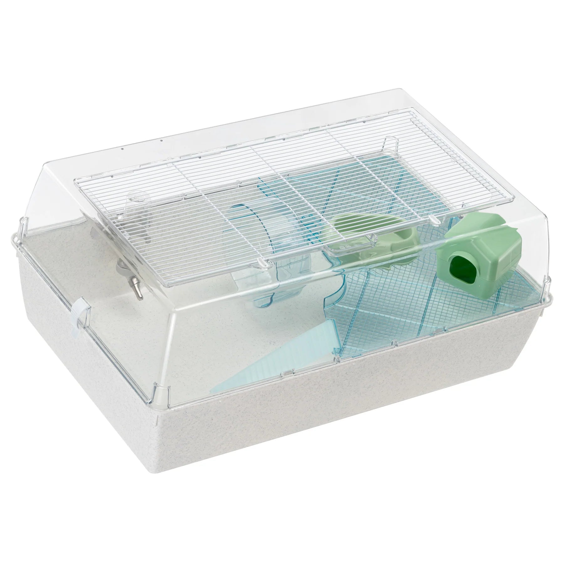En flexibel och välutrustad hamsterbur som ger både djur och ägare en praktisk, trygg och lättskött lösning för ett aktivt smådjursliv.