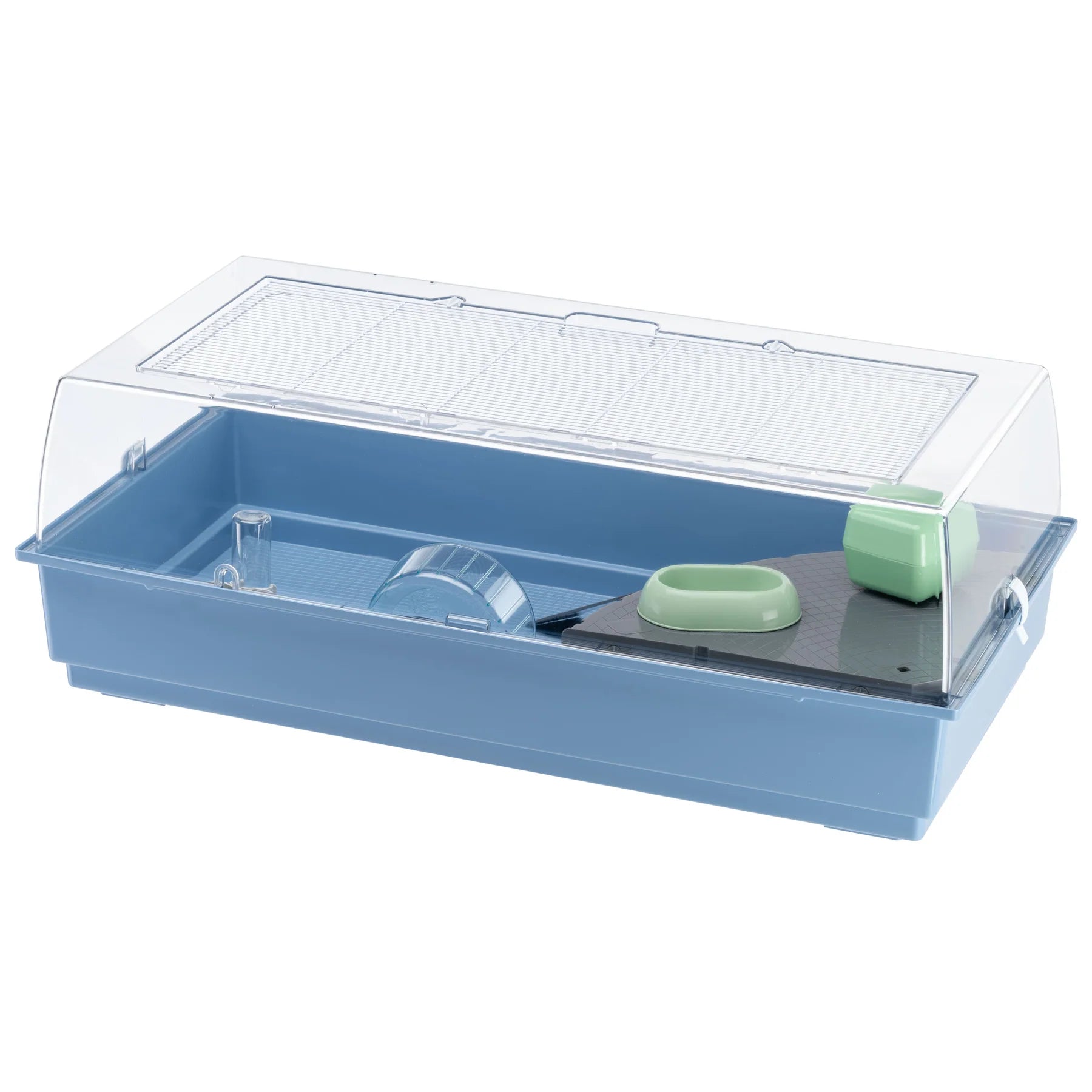 - Mått: Buren har yttermåtten 99 x 51,5 x 36 cm och erbjuder en mycket rymlig bottenyta som ger gott om plats för lek, grävande och vila. Den stabila plastbotten bidrar till trygghet och håller strö och sand på plats.