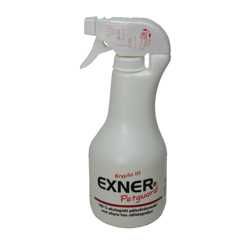 Exner Petguard är ett pälsvårdsmedel för sällskapsdjur som enbart innehåller naturliga ingredienser och främjar djurets välmående. Medlet kväver all ohyra och kan användas även på nyfödda djur vid behov. Det är helt ofarligt för både människor och djur och kan därför användas regelbundet.