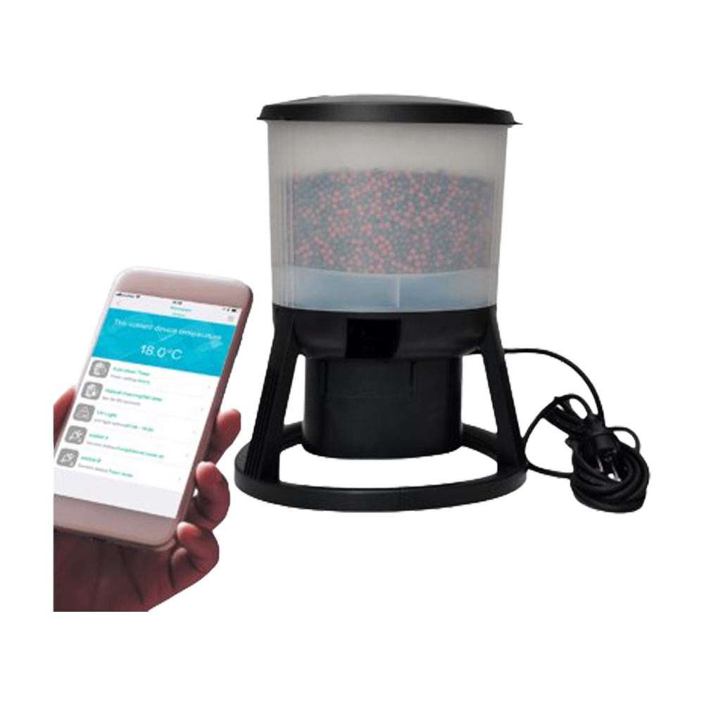 Pondlink system foderautomat är en praktisk och flexibel lösning för automatisk utfodring av dammfisk. Automaten är utformad för att aktiveras när strömmen slås på och av, vilket gör att den enkelt kan styras via en smart kontakt eller ett automatiserat timersystem. Genom att koppla den till ett smart hem-system kan utfodringen styras direkt från mobiltelefonen.