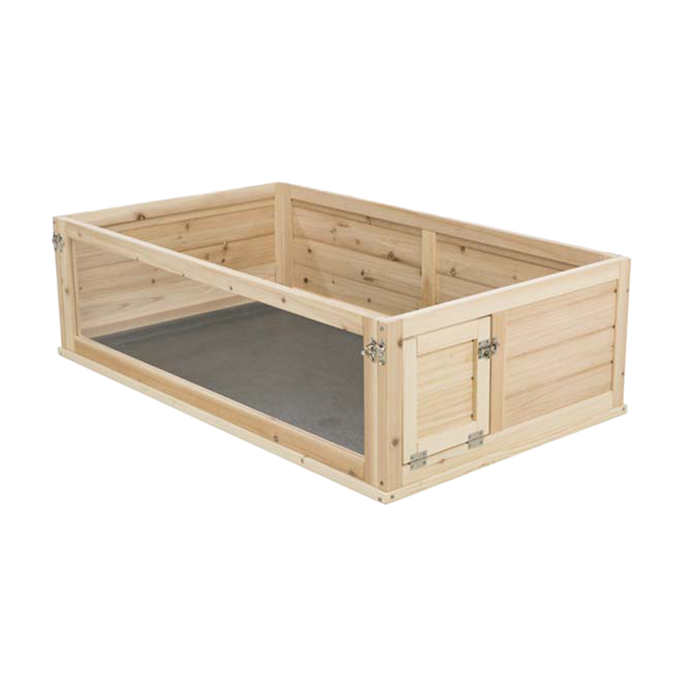 - Funktion: Fronten är utrustad med avtagbar akrylplast som ger insyn och skydd mot drag. Den sidoplacerade, låsbara dörrluckan gör det enkelt att komma åt hagen vid behov. Den urtagbara plastbaljan i botten möjliggör snabb och enkel rengöring, vilket bidrar till en hygienisk miljö. Hagen kan kombineras med innehage 62481 för att skapa större och mer varierade ytor.