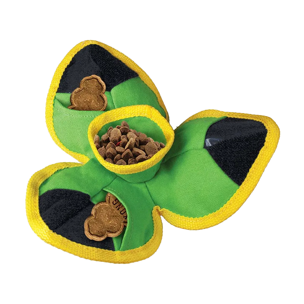 Denna hållbara leksak från KONG kombinerar godisutdelande skoj med en robust design för tuffa lekar. Med sina slitstarka fickor och kardborrband kan du enkelt justera svårighetsgraden på leken genom att gömma godis i fickorna och ändra på hur lätt de är att nå. När den är stängd fungerar den även som en boll för kast- och apportlekar.