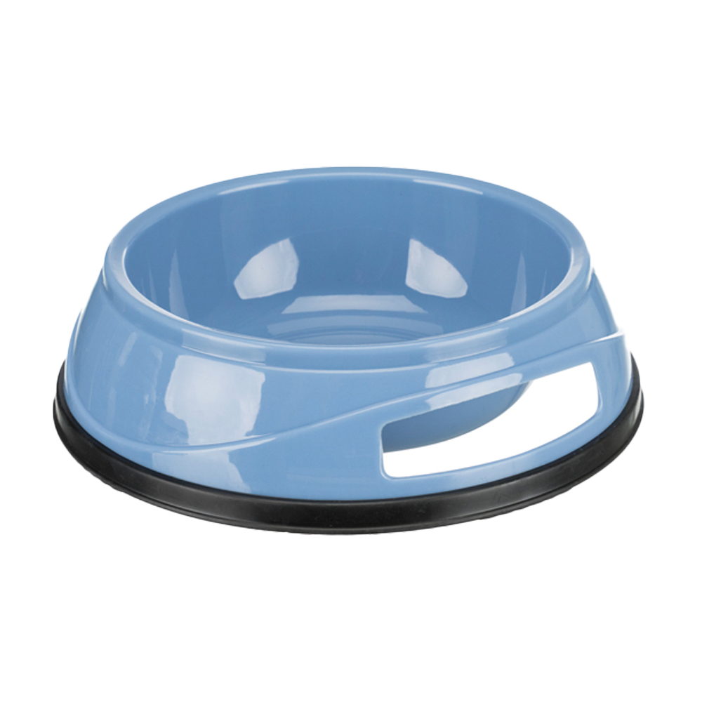 En funktionell matskål tillverkad i slitstark plast. Den är enkel att rengöra, tål diskmaskin och står stadigt tack vare en halkfri gummiring undertill. Skålen levereras i blandade färger beroende på lagertillgång.
