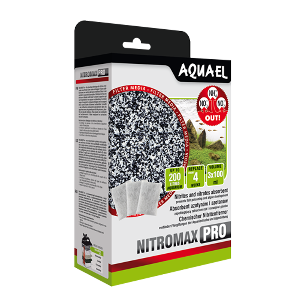 NitroMAX Pro är ett avancerat filtermedia utvecklat för kemisk filtrering i sötvattensakvarier, paludarier och terrariumdammar. Materialet består av fleecepåsar fyllda med en speciellt utvald jonbytarmassa som effektivt avlägsnar skadliga kväveföreningar som nitrit och nitrat ur vattnet. Genom att minska koncentrationen av dessa ämnen skapar NitroMAX Pro en säkrare och mer stabil miljö för fiskar, samtidigt som det hjälper till att förebygga algtillväxt och minskar behovet av frekventa vattenbyten.