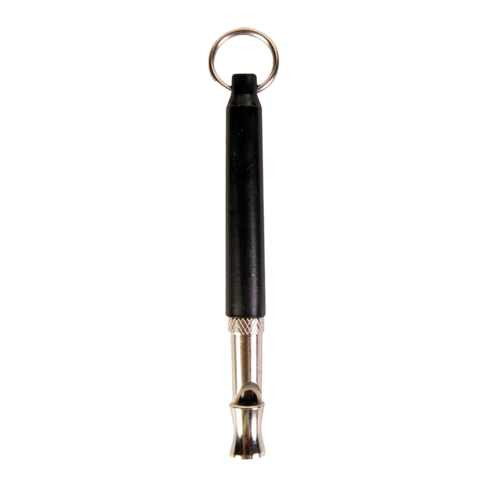 En kompakt överljudsvisselpipa tillverkad i metall och plast, utformad för att ge signaler som är svåra att uppfatta för människor men tydliga för hundar. Den har ställbar ljudfrekvens, vilket gör det möjligt att anpassa signalen efter hundens hörsel och träningsbehov.