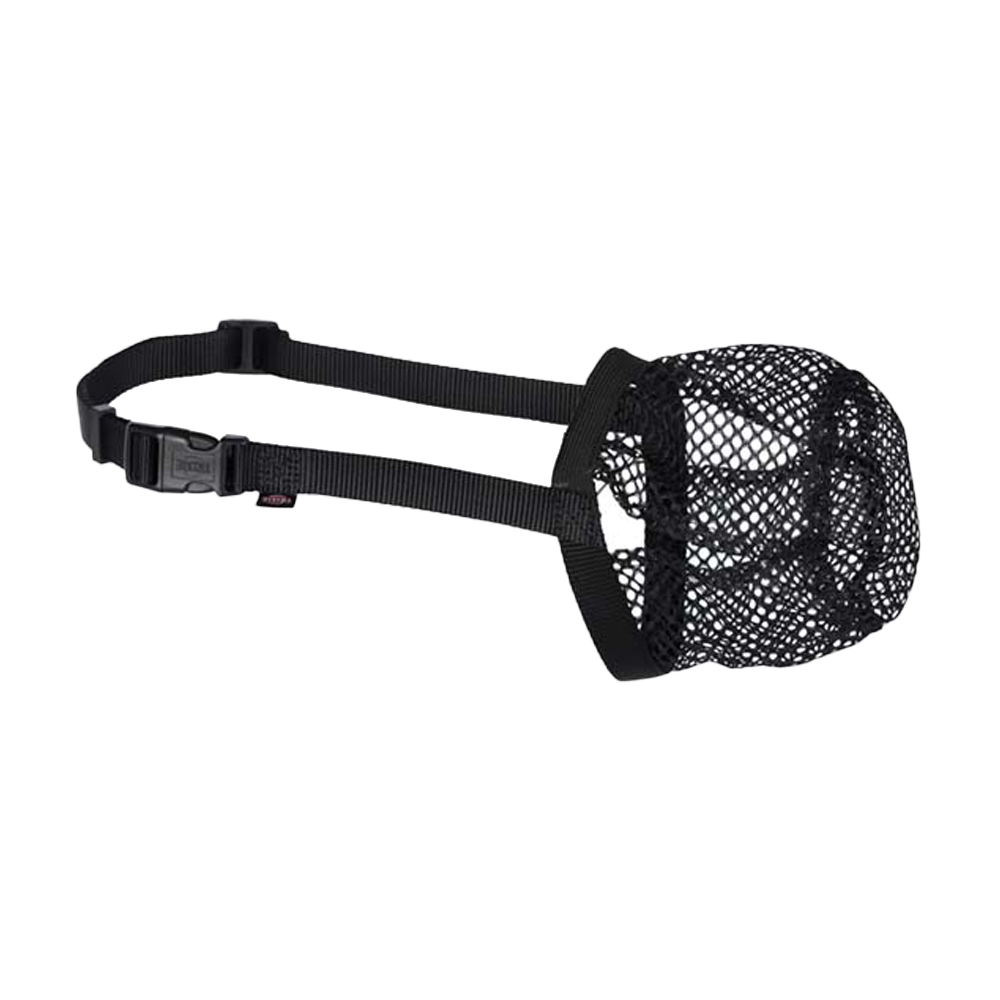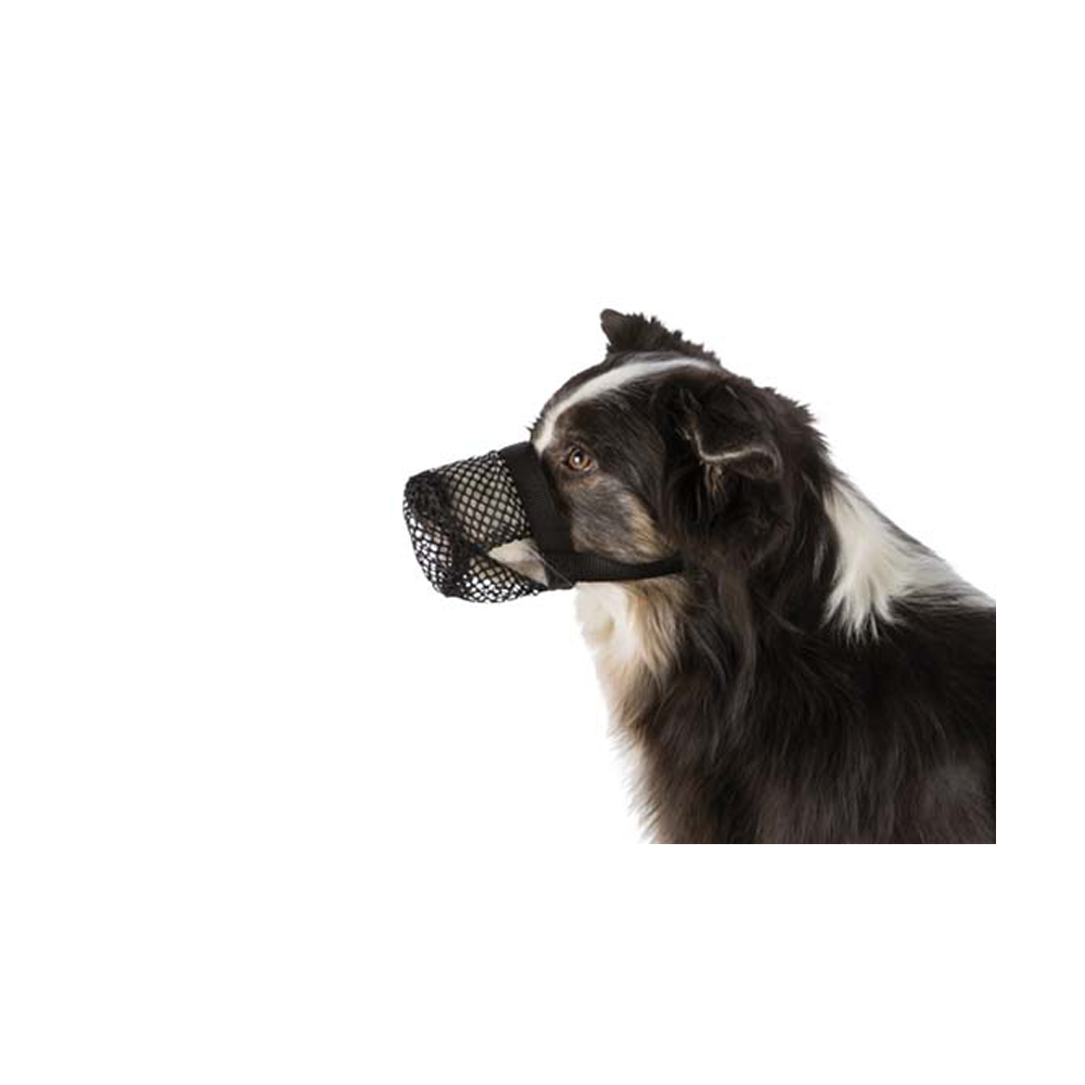 En praktisk och lättanvänd skyddskorg som förhindrar hunden från att äta olämpliga eller farliga föremål under promenader. Den tunna konstruktionen i nättyg av polyester med elastiska band gör skyddskorgen bekväm och säker att bära. Sidoöppningarna gör det möjligt att ge hunden godis eller belöning utan att ta av korgen, och den är fullt justerbar för bästa passform.