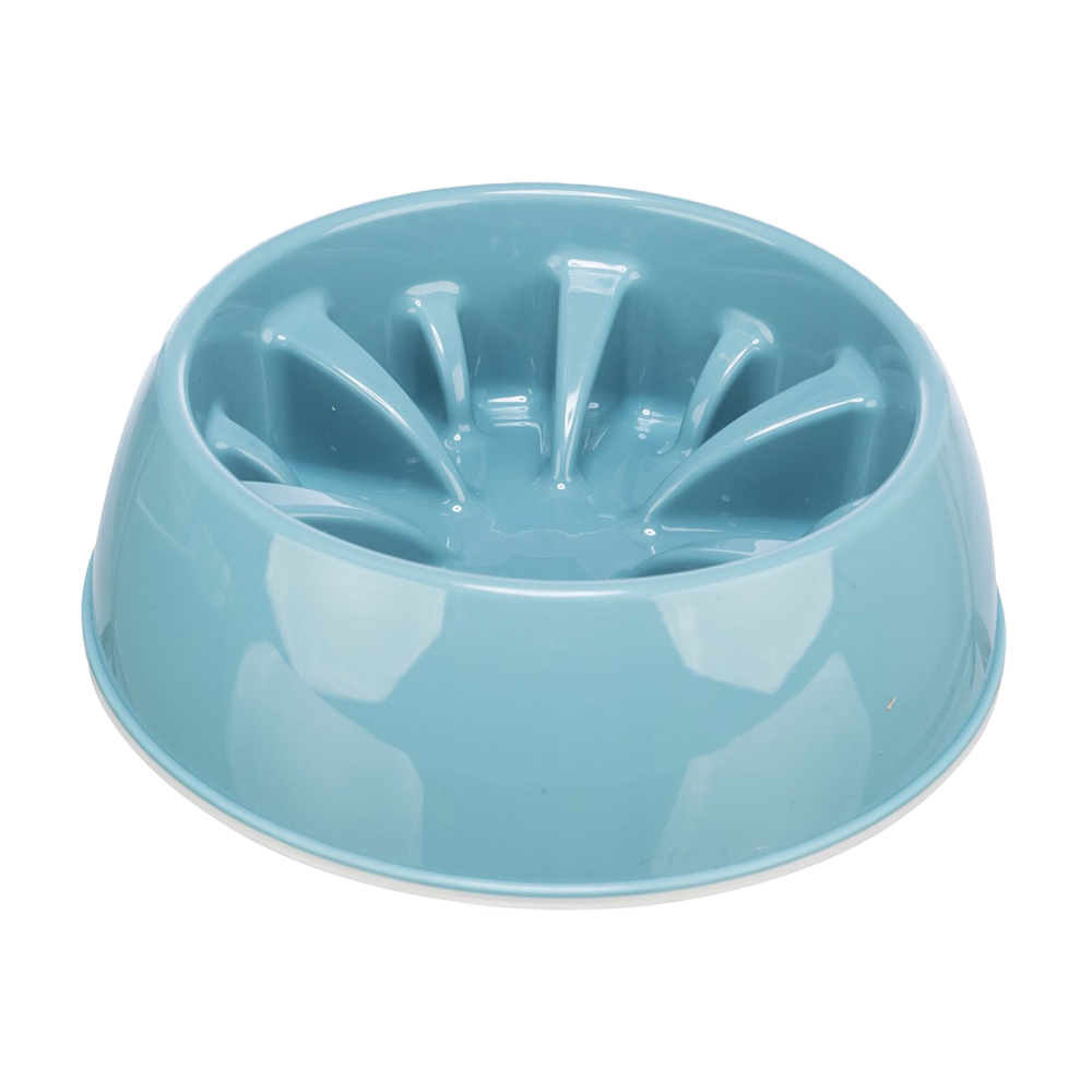 En praktisk matskål i plast/TPR som förhindrar att hunden eller katten slukar fodret för snabbt. Passar alla typer av foder och är utrustad med gummiring som gör den halkfri under måltiden.