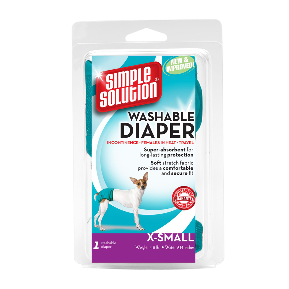 Den tvättbara blöjan från Simple Solution är ett praktiskt och återanvändbart skydd som hjälper till att hålla både hund och hem rena under löp- eller inkontinensperioder. Den är tillverkad av mjuka och bekväma material som är skonsamma mot huden och ger full rörelsefrihet. Den absorberande kärnan fångar upp vätska och håller hunden torr och bekväm under hela användningen. Efteråt kan blöjan enkelt tvättas och användas igen, vilket gör den till ett både ekonomiskt och miljövänligt alternativ.