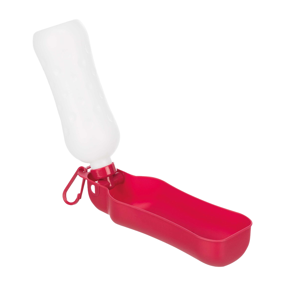 En smidig vattenflaska med utfällbar skål som gör det enkelt att ge din hund vatten när ni är ute. Perfekt att ta med på promenader, resor eller utflykter.