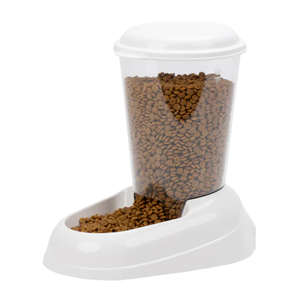 - Användning: Fyll behållaren med torrfoder och låt maten rinna ner automatiskt i skålen. Perfekt för daglig användning och för att hålla fodret lättillgängligt.
